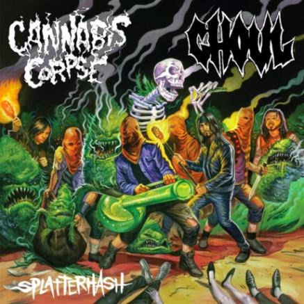 Cannabis Corpse kicks things off on the split. The band is a marijuana-based parody of Cannibal Corpse, which can probably be ascertained by the band's name. The band was created by Land Phil of crossover/thrash metal band Municipal Waste. He does do a fairly competent impression of Corpsegrinder Fisher. Many of the band's song names are direct knockoffs of Cannibal Corpse songs, such as "Inhalation Plague" from "Evisceration Plague". The references to Cannibal Corpse are pretty clear, though Cannabis Corpse does a pretty solid job of presenting their own style. The dual vocals are an impressive addition that is apparently new to the group these days. I have been previously reluctant to check out Cannabis Corpse. The fact that they were originally a parody band and their obsession with marijuana were turnoffs. However, the music is very strong death metal. I would be willing to give them another chance based on this.